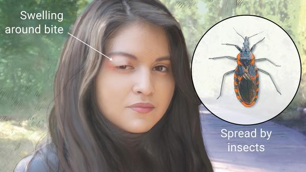 Chagas disease is generally not prevalent with origin in the U.S., although the vector can survive in the southern U.S. However, in the U.S., at least 300,000 cases of chronic Chagas disease are estimated among people originally from Latin American countries. One of the signs of infection can sometimes be a swollen eye (seen above), with the eye sometimes serving as the site of entry for the infection, after the triatomine bug bit you and pooped on your face while you slept causing you to push their infected feces into your own eye. Tricking you into finish their dirty deed.